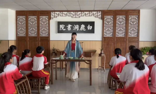 在學校的白鹿洞書院,小一姐姐以中國傳統節日為切入點,通過現場授課方式,將李清照的經典名篇《夏日絕句》用生動有趣的古詩手勢舞進行了演繹,為同學們送上了有趣的“精神大餐”,不僅讓同學們感受到了國風手勢舞的魅力,更讓優秀傳統文化浸潤孩子們的心靈。小一姐姐以暖心手勢舞《把未來點亮》勉勵同學們認真學習,以青春奮斗的姿態創造美好人生。