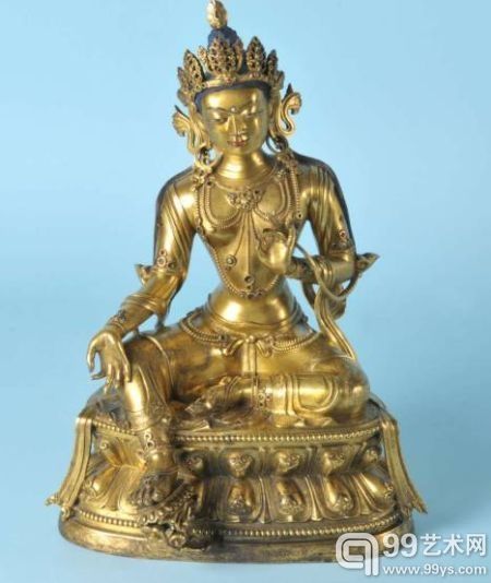 據悉,此次拍賣的佛像高約33厘米,通體鎏金,為綠度母坐像,鑄造年代應為19世紀即清代中后期。