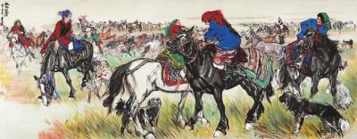 黃胄的成就不僅在于他是一位杰出的藝術(shù)家,他還是一位社會(huì)活動(dòng)家和教育家,他創(chuàng)辦了中國(guó)第一座大型民辦藝術(shù)館——炎黃藝術(shù)館。匡時(shí)副總經(jīng)理謝曉東認(rèn)為,《歡騰的草原》這幅作品能夠拍得這么高的價(jià)格,不僅由于作品本身的價(jià)值,與黃胄本人在中國(guó)美術(shù)史的地位、社會(huì)上做的諸多杰出活動(dòng)等,都有著密切的關(guān)系。