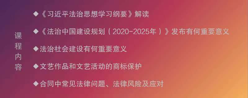 培訓班注重加強對文聯(lián)干部和文藝工作者的思想政治理論培訓,緊密結合文藝維權工作實際需要和文藝工作者的維權需求,科學設置相關課程。培訓課程詳細介紹了《習近平法治思想學習綱要》的主要內容,闡釋了習近平法治思想的重大意義、豐富內涵、核心要義、精神實質、實踐要求。培訓課程解讀了《法治中國建設規(guī)劃(2020—2025年)》和《法治社會建設實施綱要(2020—2025年)》對新時代更好發(fā)揮法治固根本、穩(wěn)預期、利長遠的重要作用。培訓課程以文藝作品和文藝活動的商標保護為重點,通過典型案例講解了商標保護對文聯(lián)組織、文藝單位和文藝工作者的積極作用,提示風險提出建議。培訓課程結合演出活動、文藝創(chuàng)作與作品傳播等文聯(lián)組織和文藝工作者常用合同類型,以案說法,分析了合同糾紛中常見的法律問題,并提供具體應對方法。
