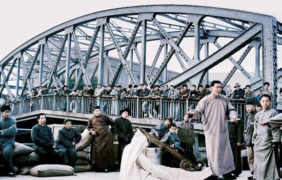 拍街景時,鏡頭也無法放太寬,因為沒有那么多群眾演員在街上走。這兩部新片,群眾演員最多時是100個,但是撒在大街上就不見多?!叭硕际窃谧邉拥?,走幾步出畫了就無效了?!编嵈笫フf。同樣的這條大街,拍《色戒》時群眾演員是2000人。