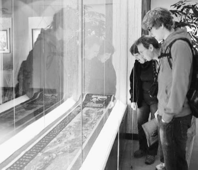 2012年12月28日,“世界非物質(zhì)文化遺產(chǎn)柘榮剪紙展覽”在福建福州開幕,圖為外國(guó)游客在參觀展覽。新華社記者 林善傳 攝