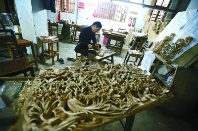 金漆木雕廠廠長、潮州木雕市級傳承人陳紹明從1964年到這里當學徒,一直堅守在這個領域。“改革開放后,新興產業蓬勃發展,木雕與其他傳統工藝一樣遇到了挑戰,很多人離開這一行做起了其他生意。”陳紹明介紹,“國營的木雕廠也顯現出諸如‘干活人少、吃飯人多’的弊端,慢慢都變成了股份制、私有制。”當時,雖然受到人才流失等的沖擊,潮州木雕卻以其精湛的技藝和獨特的藝術風格保住了自己的市場。在陳紹明看來,近10年是潮州木雕市場最好的10年,以前主要用于出口的潮州木雕,國內的市場需求也很大。