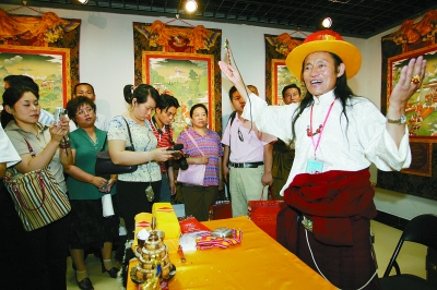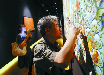 觀眾參觀唐卡展覽。 陳 曦 攝