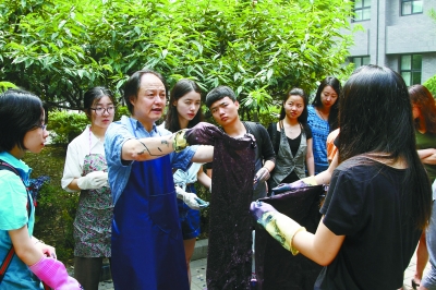 盡管只是作為選修課開設,但參與這項課程的學生卻一年多過一年。“剛開始是20個人選課,后來增加到30個、40個,很多學生報不上名,沒學分,也來聽課、參與,今年我的班最后有六七十名學生,還有不少是韓國、斯里蘭卡等外國的留學生。”國家級非遺傳承人、南通藍印花布印染大師吳元新每年都來此授課,學生們的熱情讓他看到了中華文明傳承的希望,同時,與學生們的互動和交流也極大地拓寬了他的視野和思路。