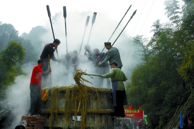 夾江竹紙制作技藝中的一環——簧鍋蒸煮 (樂山市文廣新局供圖)