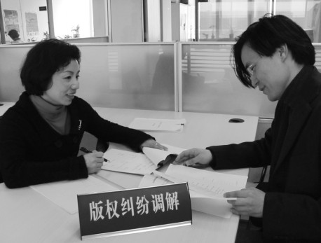 在位于上海張江國家數字出版基地的上海版權糾紛調解中心,記者見到了該中心常務副主任王艷。作為承擔著全上海地區版權糾紛調解工作的上海版權糾紛調解中心,雖然專職工作人員只有一兩個,但背后卻有著包括上海各高校知名教授、退休法官、律師、民事仲裁員在內的專家庫作為堅強后盾。據介紹,目前專家庫共有糾紛調解專家32名,這個數字還在不斷擴大。在中心,記者見到了“當班”的兼職調解員毛向東律師,據介紹,上海高院知產庭法官于金龍退休后也成為中心的主要調解員之一。