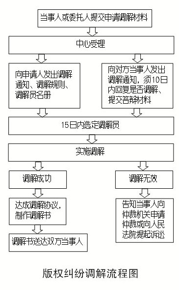 2011年,上海普陀區人民法院知識產權庭和上海版權糾紛調解中心就后者為前者擬受理的著作權糾紛案件進行調解達成合作意向,并就具體操作流程進行了梳理。2011年10月,上海版權糾紛調解中心正式接手了普陀法院知識產權庭關于兩批著作權糾紛共計80個案件的調解委托,現已成功調解結案68起,占委托調解案件的85%。