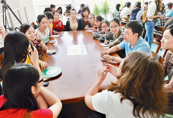 近日,一場別開生面的“真人圖書館”活動在南京師范大學舉行,“真人圖書館”的創辦者、校友韓瀲帶著她的“藏書”——11位“真人圖書”主角,來母校免費舉辦首次公開閱讀會。先期預約“借閱”的近200名大學生讀者按所選“書目”分組,與“真人圖書”面對面交流,分享他們的人生經歷和感悟。圖為一組讀者在聽“真人圖書”講述自己的故事和人生經驗。