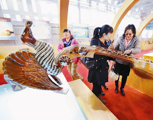 10月16日,第三屆絲路明珠——喀什噶爾國際旅游文化節(jié)暨首屆民族樂器博覽會在新疆喀什會展中心開幕,來自喀什地區(qū)各縣市民族樂器廠都拿出各自的經典民族樂器前來參展。據介紹,早在葉爾羌汗國時期,維吾爾歌舞藝術就達到一個高峰期,為歌舞伴奏的樂器制造業(yè)成為了一個獨立手工行業(yè),從此有了專門的樂器工匠為樂器選材加工、調試、工匠們可以滿足市場需求批量生產,也可為專人定制所需樂器,因此樂器也成為喀什極具地方特色和民族風格的手工產品。常見樂器有熱瓦甫、都塔爾、納格拉鼓、達普等。