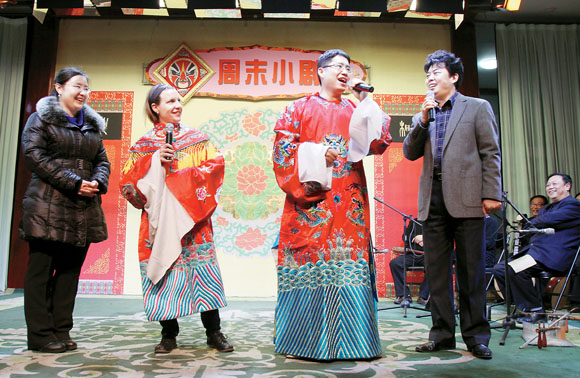 11月4日,北京迎來(lái)一場(chǎng)雨夾雪,但幾十位中外記者卻在十八大新聞中心的精心組織下一大早就興致勃勃地趕赴河北省霸州市參觀采訪。記者們先后來(lái)到霸州市華夏民家收藏館、李少春大劇院、益津書(shū)院、中華戲曲大觀園等地。霸州濃郁的文化氛圍和日臻完善的公共文化服務(wù)體系觸動(dòng)了在場(chǎng)的每一位記者。圖為中外記者跟當(dāng)?shù)厮囆g(shù)家學(xué)習(xí)京劇唱腔,深刻體驗(yàn)中國(guó)傳統(tǒng)文化的魅力。