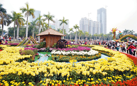 正在廣西南寧舉辦的首屆菊花展占地面積約7200平方米,用花總量約10余萬盆,其中菊花近8萬盆。繽紛多姿的菊花吸引大批市民和游客前來觀賞。