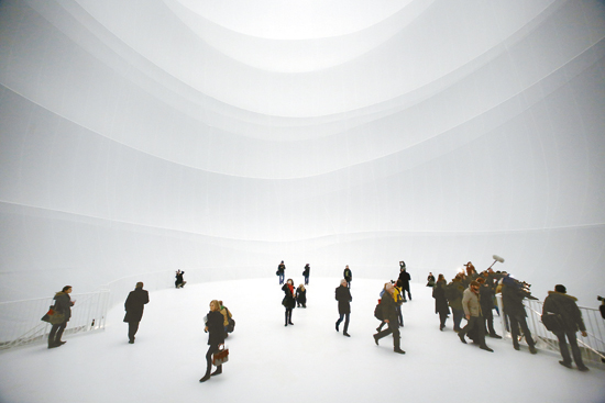 3月15日,觀眾在德國奧伯豪森參觀保加利亞出生的藝術家克里斯托發明的“空氣包”。“空氣包”由透明材料制成,內有90米高的貯氣器。新華社/EPA歐新