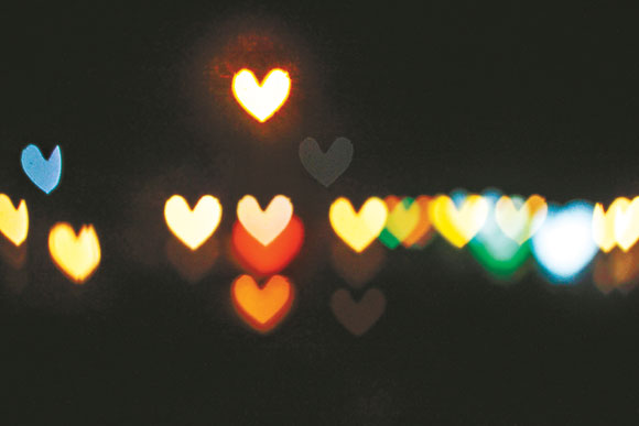 4月6日,廣州陰雨連綿,遠處的燈光在鏡頭的虛化下化作心形(遮擋拍攝)。