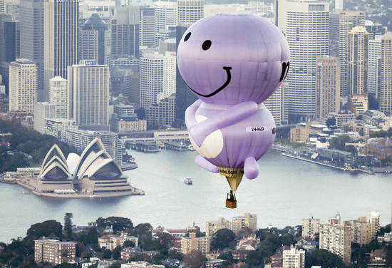 5月6日,一個卡通形象的熱氣球在澳大利亞悉尼上空飛行。當日,一家果汁公司為慶祝成立10周年而放飛這個卡通形象的熱氣球。