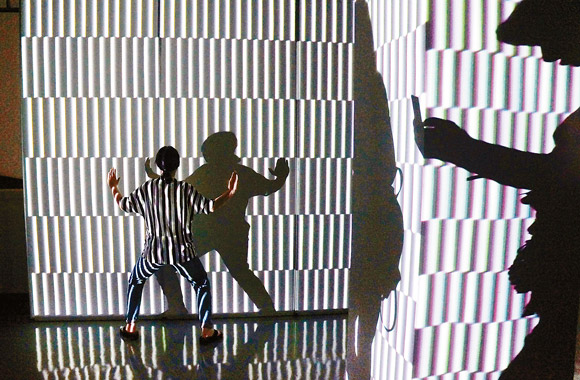 5月7日,觀眾在武漢K11藝術(shù)村舉辦的《駐地?cái)?shù)字藝術(shù)展》上參觀體驗(yàn)。當(dāng)日,2013“中法文化之春”系列活動(dòng)之一的《駐地?cái)?shù)字藝術(shù)展》開幕。該展覽展示了法國(guó)數(shù)名多媒體藝術(shù)家與22名湖北美院的師生創(chuàng)作的數(shù)字新媒體藝術(shù)和當(dāng)代藝術(shù)作品,內(nèi)容豐富,形式新穎,令觀眾目不暇接。