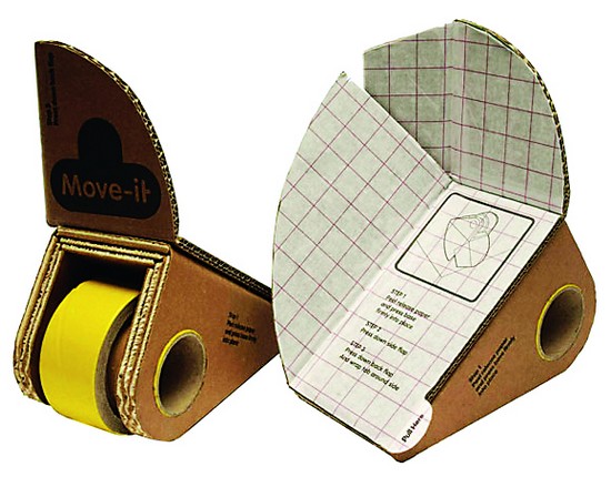 小拖車的材料是廢棄的紙箱,利用紙箱硬紙板進行簡單的組合,再將兩個輪子放在箱子的兩旁即可完成一個拖車,能運送20多公斤的貨物。