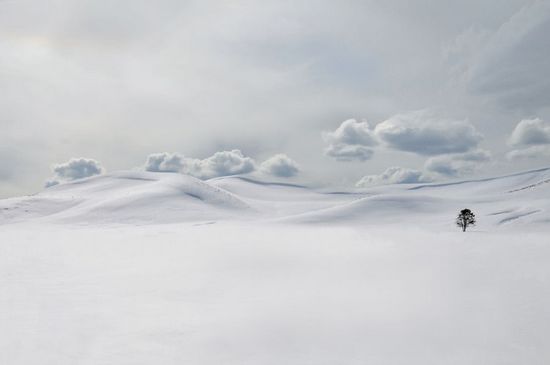 孤樹:美國懷俄明州的黃石國家公園里,一場暴風雪肆虐過后,只剩下一顆孤獨的小樹依然屹立。