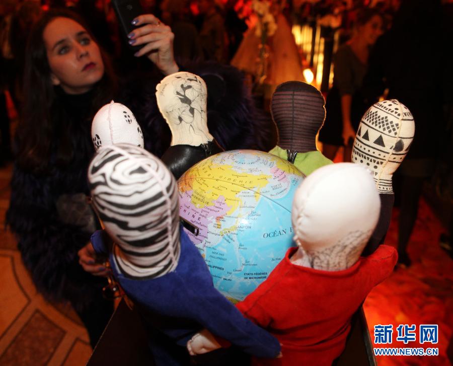 11月28日,在法國巴黎小皇宮舉行的聯合國兒童基金會名師設計布娃娃展上,CHANTAL THOMASS品牌設計的洋娃娃與觀眾見面。