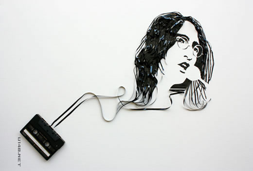 Erika已經用那些回收的卡帶,老電影膠片,秒表等,制作出了很多的畫像。