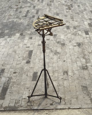 銅鍍金雙千里鏡象限儀,英國倫敦制造,附鐵架通高146cm,弧盤半徑50cm。清宮舊藏。