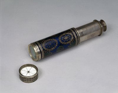 銀嵌琺瑯二節望遠鏡,18世紀,歐洲制造。