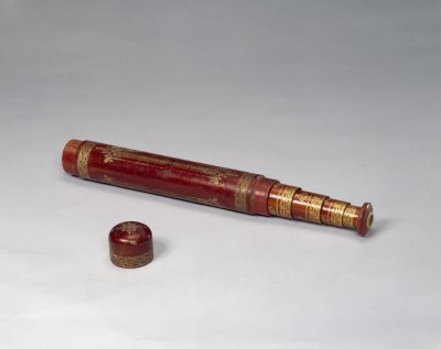 橙漆皮銅鍍金望遠鏡,18世紀,英國倫敦Gilbert &Wright制造。