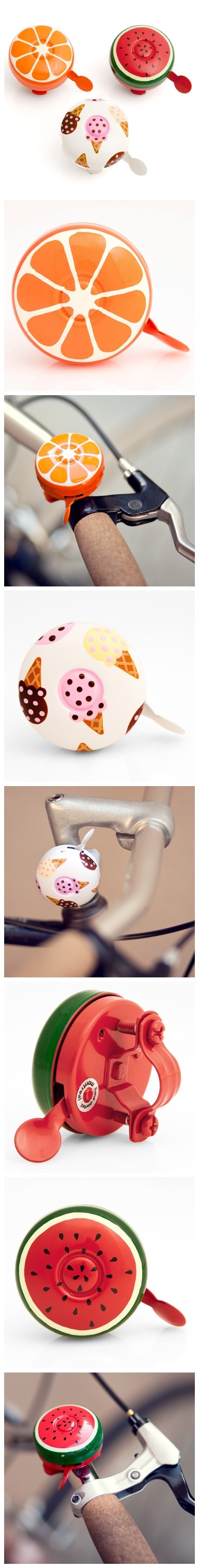 鈴~鈴~~自行車應該是不少人的代步工具,盡管平時大多開車,但是我也喜歡享受騎著單車,乘風而行的快感。今天要分享這些看來美味可口的自行車鈴鐺,一共有冰淇淋、柳橙和西瓜等圖案,想不到除了警示的作用,這些養眼鈴鐺的出現,更為視覺添上了不同的感受。