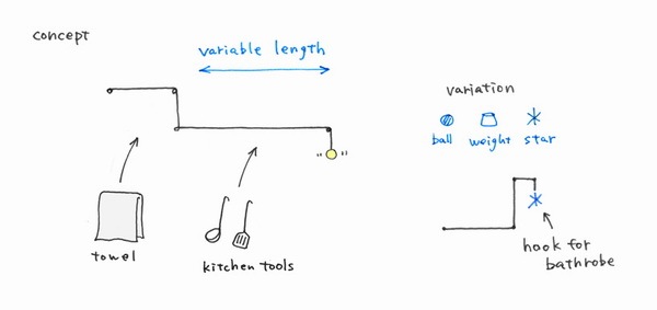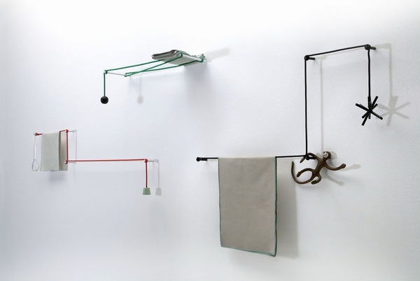 日本設(shè)計(jì)師hiroomi tahara設(shè)計(jì)的一款有趣的毛巾架。摒棄以往同類產(chǎn)品固定的框架結(jié)構(gòu)towel hanger更加具有隨意性,簡單的三部分:繩子、配重、固定桿構(gòu)成了towel hanger的重要組成部件,你可以根據(jù)需要或者心情隨意安排和組合它們,在使用上給予了人們極大的想象空間。