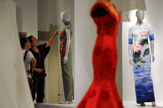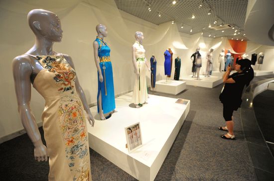 自上世紀20年代起流行至今的旗袍,不但繼承了中國古代的袍服元素,還吸取了西洋服裝裁剪方法,實際上是一種中西服飾文化結合的產物,也被公認為是最具代表性的中華女裝款式。于6月11日在杭州中國絲綢博物館開幕的“百年華裝·絲情杭州——中華服裝的遺產與繁榮”展出了自晚清到當代的110余件旗袍作品,其中不少來自名人捐贈。本次展覽分為5個單元,介紹了旗袍的文化背景、面料品種、制作工藝、圖案風格等諸多方面,向觀眾展示了百年旗袍的演