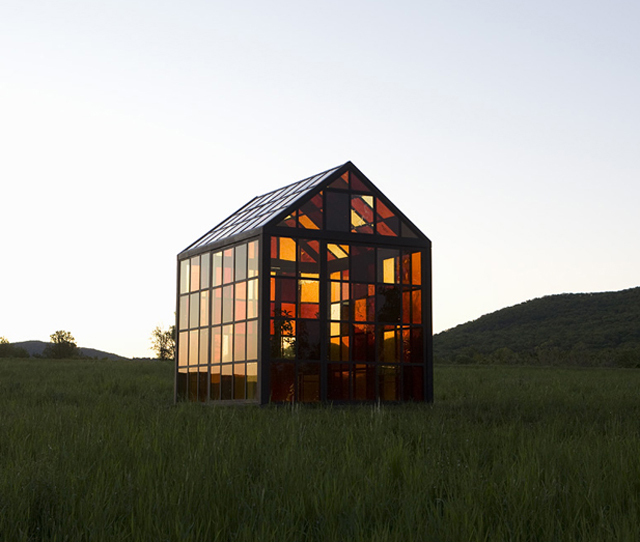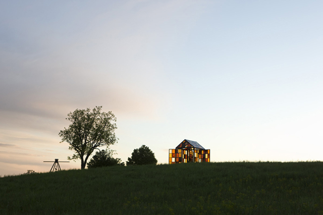 這所名叫Solarium的彩色玻璃房便出自light&landscape,它孤獨的坐落在一個光禿禿的山丘頂上,通過自然光對有色玻璃屋的照射,原本只有綠色和一片空寂的山丘上多了幾分讓人充滿希望的色彩,這色彩不是藝術家們給予的,更不是材料起的作用,它的希望來自偉大的自然界。