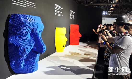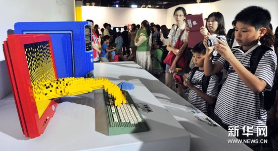 (4)7月14日,參觀者在“積木夢工場”欣賞積木藝術作品。