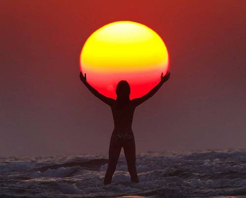 23歲的攝影師Malek別出心裁的利用錯位拍攝法拍攝出了一組有趣的人與太陽的合影。合影中有女人“托舉”起太陽的照片也有兩個男人把太陽當球踢的照片。