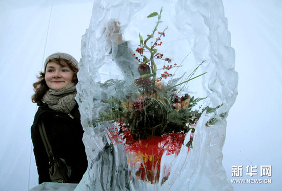 當日,烏克蘭首都基輔舉辦冰花展以迎接新年的到來,絢麗多彩的冰花吸引了眾多市民和游客前來觀賞。 新華網圖片 斯塔拉斯堅科 攝