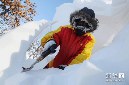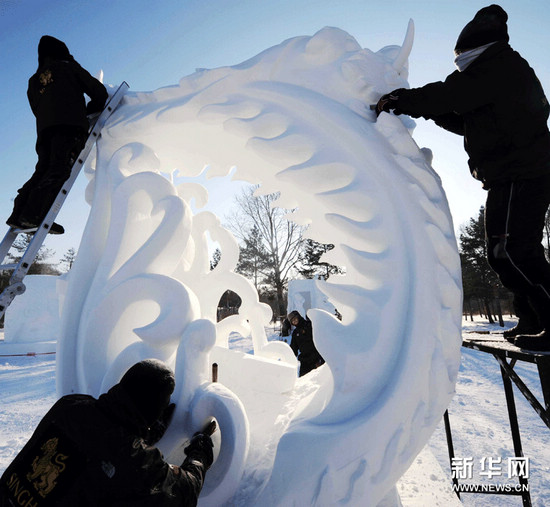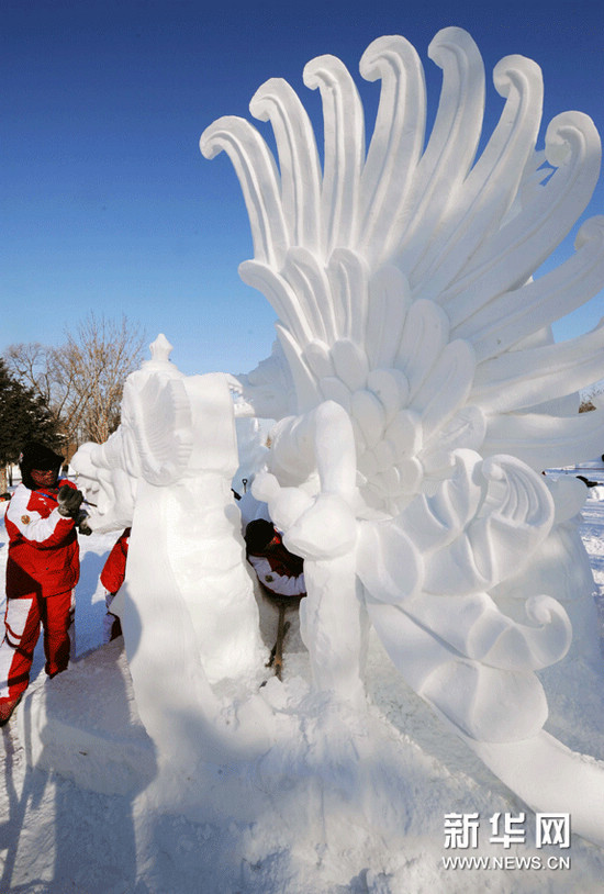 當日,第18屆哈爾濱國際雪雕比賽在哈爾濱太陽島雪博會國際雪雕賽區落幕,法國隊的參賽作品《自由進入》奪得頭籌。此次為期4天的比賽吸引了來自11個國家和地區的70多名中外雪雕藝術家參加。新華網圖片 王建威 攝