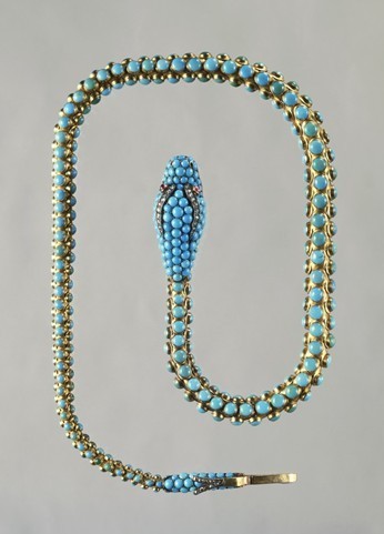 用綠松石,紅寶石以及鉆石加工而成的蛇形項鏈,19世紀。
