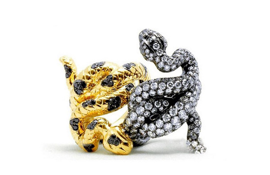 蛇是頗具靈性的生物,古時便有將靈蛇比喻才華橫溢之人的說法。這些看似兇猛的靈獸,在珠寶設計師眼里卻宛若蛟龍,憑借高超的珠寶工藝,將他們塑造成項鏈、指環、耳環等精美首飾,佩戴之余也有征服猛獸的勝利感吧,在2013蛇年,蛇形珠寶想必也會大熱一把。