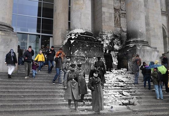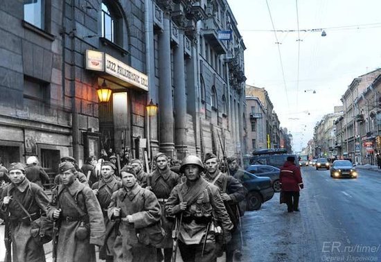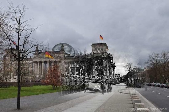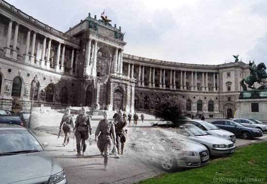 據(jù)《太陽報》和《莫斯科時報》報道,俄羅斯攝影師謝爾蓋伊·拉仁科夫用合成照片制造出驚人的時空穿越效果,仿佛二戰(zhàn)“幽靈”復(fù)活,行走在現(xiàn)代街道上。拉仁科夫介紹,他從檔案館和網(wǎng)上搜尋到二戰(zhàn)時期的老照片,并通過ps技術(shù),將這些黑白照片和同一地點拍攝的現(xiàn)代日常照片整合到一起。這個過程很簡單,效果卻非常驚人:納粹德軍的鐵蹄踏上人來人往的現(xiàn)代馬路;行色匆匆的上班族與扛槍的士兵擦身而過;戰(zhàn)爭死難者的尸體凄涼地倒在繁華的現(xiàn)代都市街頭……這些照片仿佛開啟了一扇二戰(zhàn)時期的“時空之窗”,給人一種異樣的穿越之感。拉仁科夫稱,他制作這些合成照片是為了讓人們重新審視那段已經(jīng)被許多人逐漸遺忘的歷史,牢記戰(zhàn)爭給人類帶來的痛苦。
