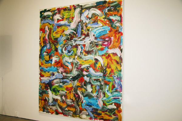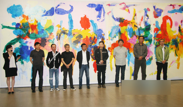 策展人黃篤在展覽前言中這樣寫道:黃拱烘的繪畫充滿非常強烈的視覺張力,即由書寫性的靈動感和色域空間的多層次感交織而成,具體說是以書寫性帶動色彩與線條構成的韻律、布局和構圖,而這一切都源于他對中國傳統書法的狂草意境的領悟,巧妙把握住了書法美學的“勢”——保持了整體與局部、強與弱、動與靜、輕與重、書寫性與繪畫性之間的節奏與平衡。