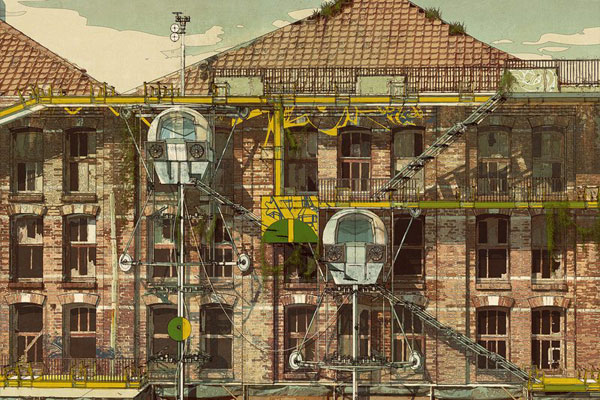 這些破舊的建筑立面作品出自藝術家Lekan Jeyifo,他來自布魯克林,是一位三維渲染師與數碼插畫家。這個系列作品用三維的表現手法再現了一座城市中廢棄的建筑立面,以及依附在立面上的破舊的設備設施。畫面充滿了科幻的色彩與豐富的設計細節,那些被腐蝕的設施好像還在運轉,那些斑駁的墻面卻在勉強地支撐著。