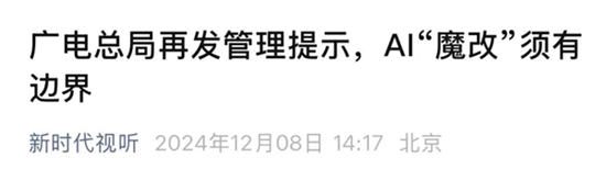 12月7日,廣電總局網(wǎng)絡(luò)視聽司發(fā)布《管理提示(AI魔改)》。