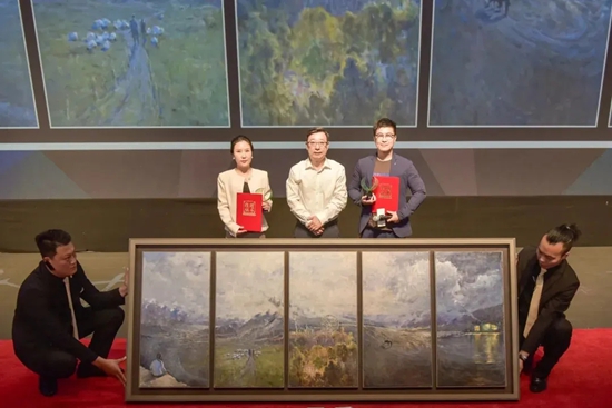 鄧光輝在首映禮現(xiàn)場(chǎng),接受由北京靳尚誼藝術(shù)基金會(huì)青年畫(huà)家傅察丹青為電影創(chuàng)作并捐贈(zèng)的五幅影片主題油畫(huà)。由五幅油畫(huà)拼合而成的電影官方海報(bào)也在首映禮上發(fā)布。