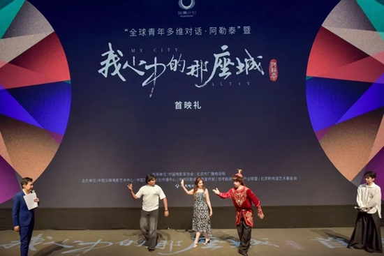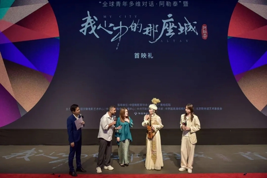 7月1日,電影《我心中的那座城——阿勒泰》首映禮暨“全球青年多維對(duì)話(huà)”專(zhuān)場(chǎng)活動(dòng)在北京華夏電影中心舉行。中國(guó)文聯(lián)黨組成員、書(shū)記處書(shū)記謝力,中國(guó)影協(xié)分黨組書(shū)記、駐會(huì)副主席鄧光輝,中國(guó)文聯(lián)辦公廳主任周由強(qiáng),北京市廣電局黨組成員、副局長(zhǎng)韓新星,中共阿勒泰地委委員、秘書(shū)長(zhǎng)、宣傳部部長(zhǎng)藍(lán)盛新,本片文學(xué)總監(jiān)梅峰、剪輯指導(dǎo)周新霞、總制片人郝為,中國(guó)文聯(lián)國(guó)內(nèi)聯(lián)絡(luò)部副主任、一級(jí)巡視員苗宏,中國(guó)電影出版社社長(zhǎng)余寧,中國(guó)文聯(lián)電影藝術(shù)中心常務(wù)副主任宋智勤,中國(guó)外文局文化傳播中心副主任王侃,以及在京專(zhuān)家學(xué)者、藝術(shù)家代表侯光明、邢占宇、馬維干、張衛(wèi)、吳軍、胡建禮、朱玉卿、焦洋、陳瀟瀟等,與青年電影人和來(lái)自全球多國(guó)的優(yōu)秀青年代表等近300人一同參加活動(dòng)。