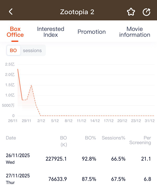 Disney's "Zootopia 2" premiered in China on November 26, day-and-date with North America, and immediately set a new box-office benchmark. According to movie data platform Beacon Pro, the film grossed 227 million yuan ($32 million) on its opening day, becoming the highest-earning imported animated film for a single day in China's box-office history. As of 1:30 p.m. on Thursday, November 27, its total earnings had already surpassed 300 million yuan ($42 million).