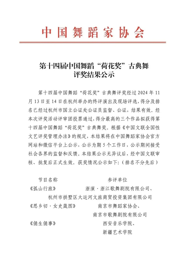 第十四屆中國舞蹈“荷花獎”古典舞評獎結果公示