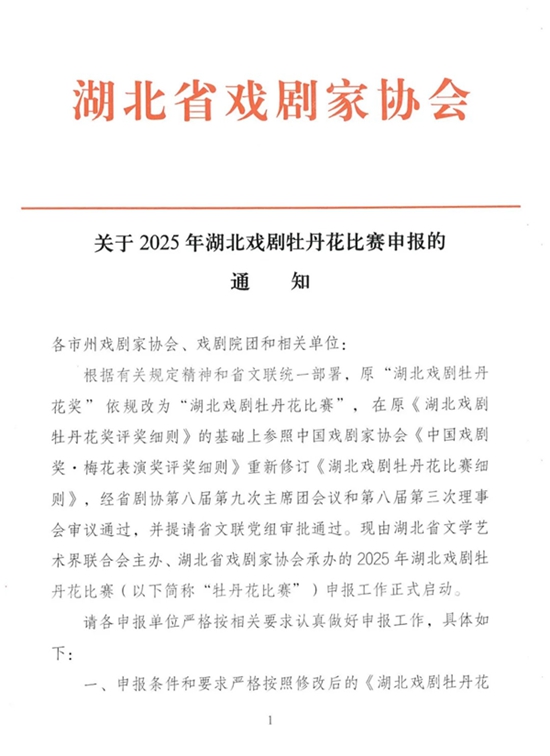 (原標題:通知 | 關于2025年湖北戲劇牡丹花比賽申報的通知)