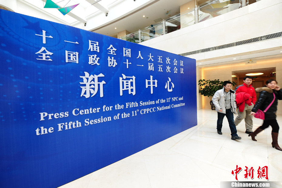 2月26日,2012年中國全國“兩會”新聞中心在北京梅地亞中心正式啟用,對境內外媒體記者開放。第十一屆全國人民代表大會第五次會議和政協第十一屆全國委員會第五次會議,將分別于3月5日和3月3日在北京開幕。中新社記者 李學仕 攝