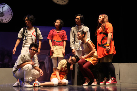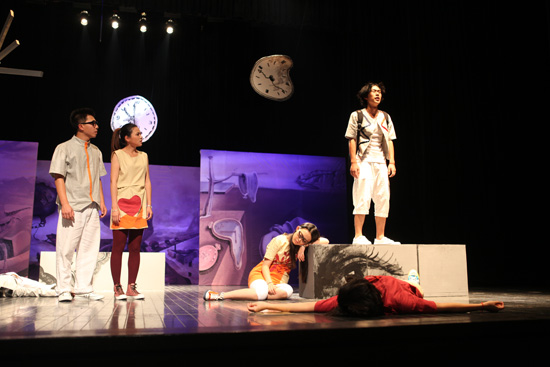 由吉林動畫學院帶來的話劇《2012我們等待戈多》講述了一群大學生在業余的時間里,因為不同的原因,參與到即將演出的話劇《等待戈多》的排練中。他們各自有各自想要追逐的東西,各有個的性格特征。但卻非常匆忙的生活,和這個社會上大多數的人一樣急于去追求自己所看重的東西,認為效率至上。可是往往欲速則不達,排練出現了問題!同時,就在這些同學們排練出現問題的時候,原劇《等待戈多》的主要人物,兩個流浪漢莫名其妙的來到了劇組當中,與正在排練的同學們出現了交流,其中有誤會,也有矛盾,也有關于兩個不同時代但是相同問題的共同點。但最終,在兩個流浪漢與同學們的思想發生了碰撞后,彼此都發生了思想上的變化和對新生活的向往,回歸生活。
