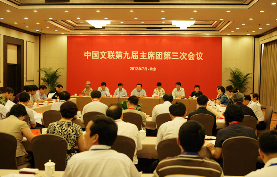 7月5日,中國文聯第九屆全國委員會第三次會議在京召開。圖為中國文聯第九屆主席團第三次會議現場。中國文藝網 劉刈 攝