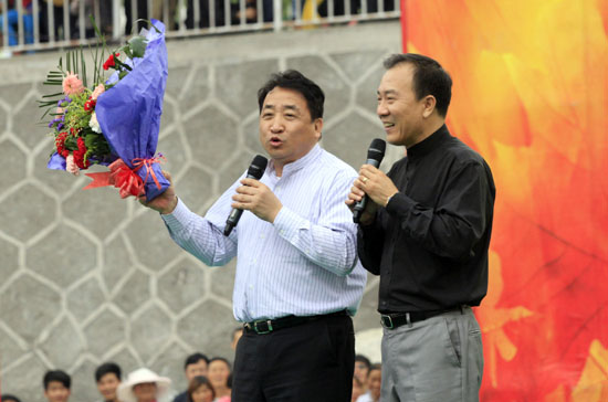 著名相聲表演藝術(shù)家姜昆、戴志誠表演相聲《笑在其外》。中國文藝網(wǎng) 白偉 攝